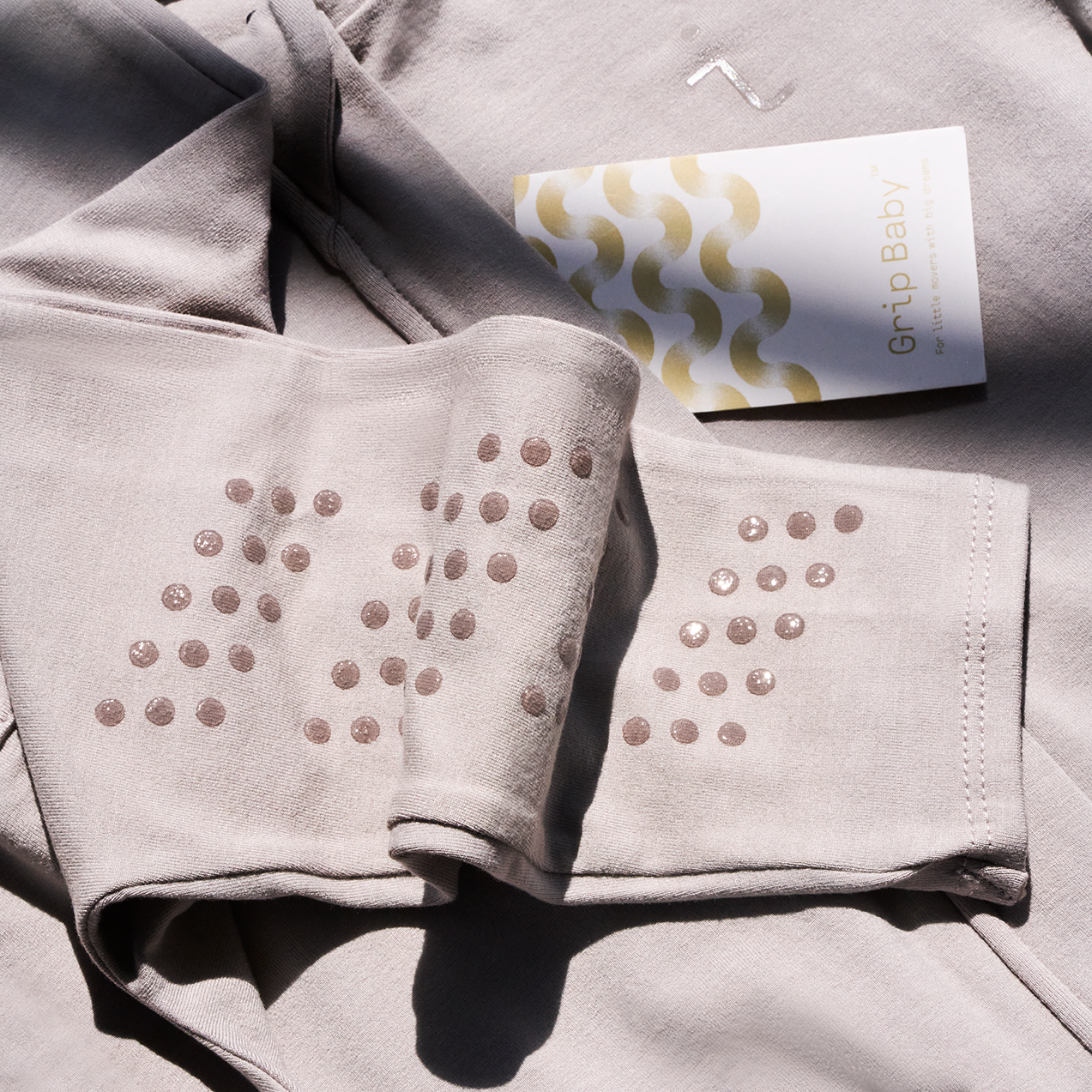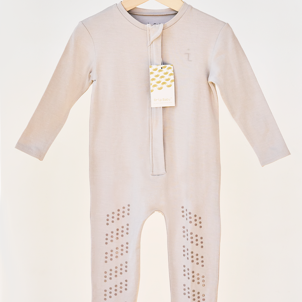 This passion collided head-on with reality when my babies started crawling. They were eager to conquer the world, but slippery floors and mats posed a bit of a challenge. My quest for grippy onesies turned up empty-handed, so I decided to create my own solution – Grip Baby!
